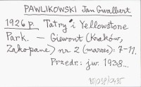 PAWLIKOWSKI Jan Gwalbert 1926 p Tatry i Yellowstone Park.