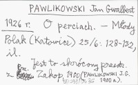 PAWLIKOWSKI Jan Gwalbert 1926 r O perciach.