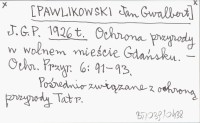 J. G. P. [PAWLIKOWSKI Jan Gwalbert] 1926 t Ochrona przyrody w wolnem mieście Gdańsku.