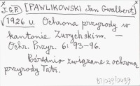 J. G. P. [PAWLIKOWSKI Jan Gwalbert] 1926 u Ochrona przyrody w kantonie Zurychskim.