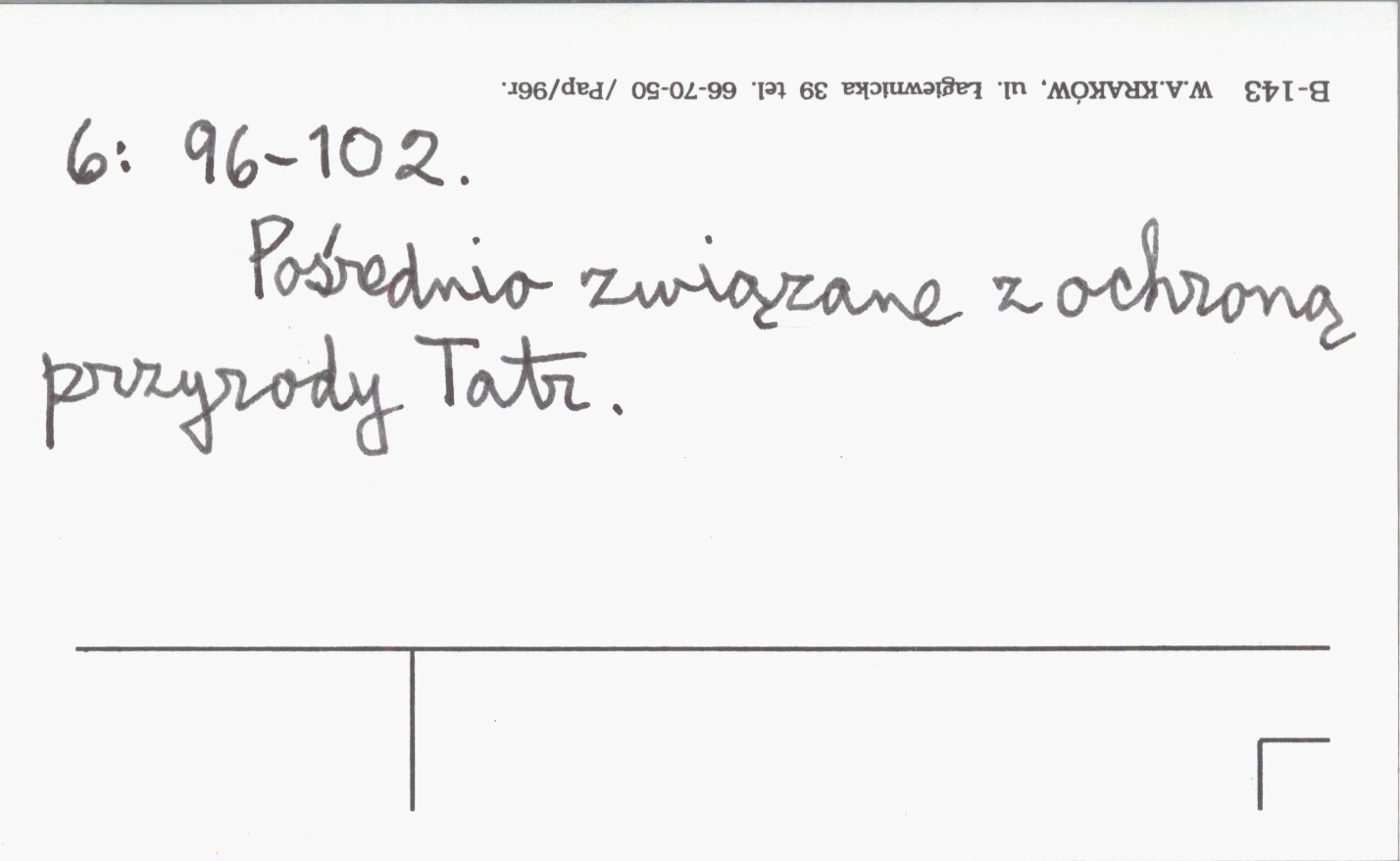 Ochrona Przyrody, 6: 96-102. Pośrednio związane z ochroną przyrody Tatr.