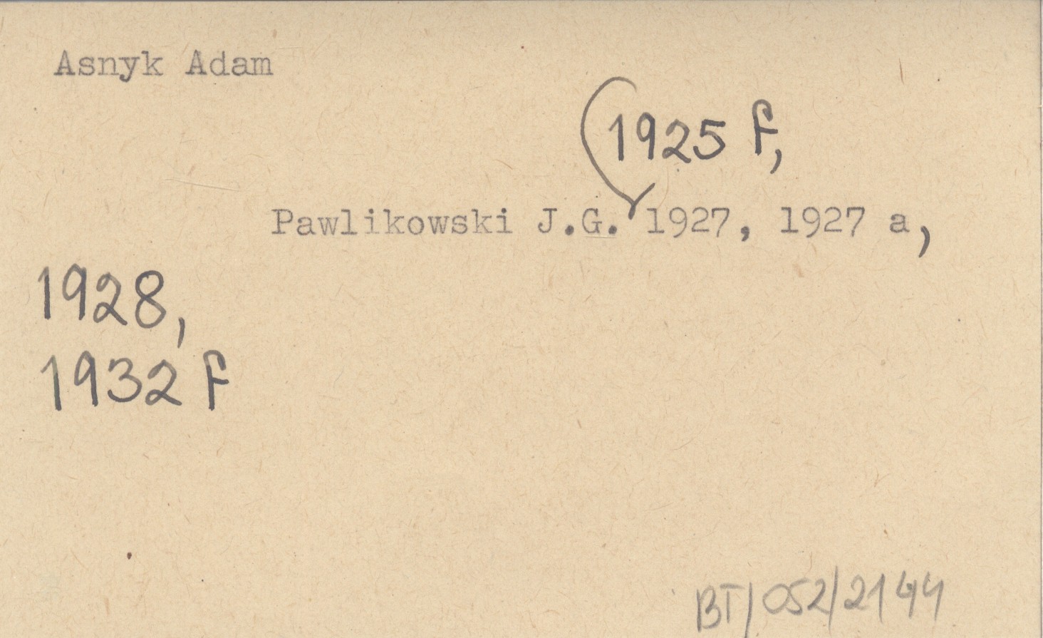 PAWLIKOWSKI Jan Gwalbert 1927 O uczczenie pamięci Adama Asnyka.