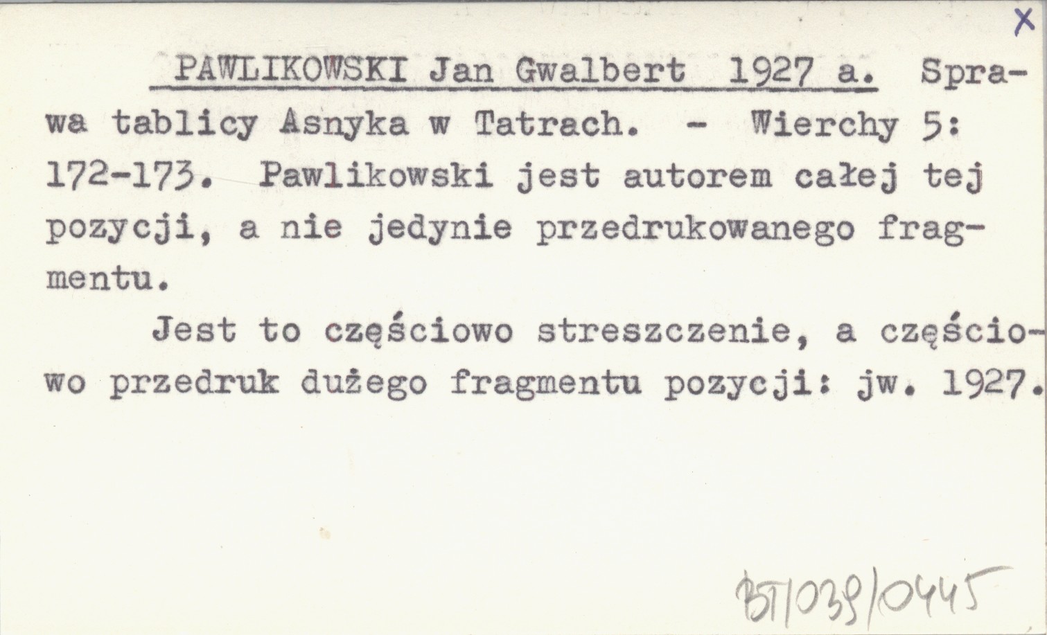 Wierchy, 5: 172-173. Pawlikowski jest autorem całej tej pozycji, a nie jedynie przedrukowanego fragmentu. Jest to częściowo streszczenie, a częściowo przedruk dużego fragmentu pozycji: jw. 1927.