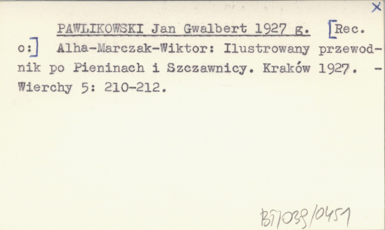 PAWLIKOWSKI Jan Gwalbert 1927 g [Rec. o:] Alha-Marczak-Wiktor: Ilustrowany przewodnik po Pieninach i Szczawnicy. Kraków 1927.