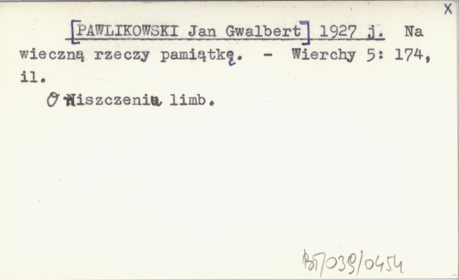 [PAWLIKOWSKI Jan Gwalbert] 1927 j Na wieczną rzeczy pamiątkę.