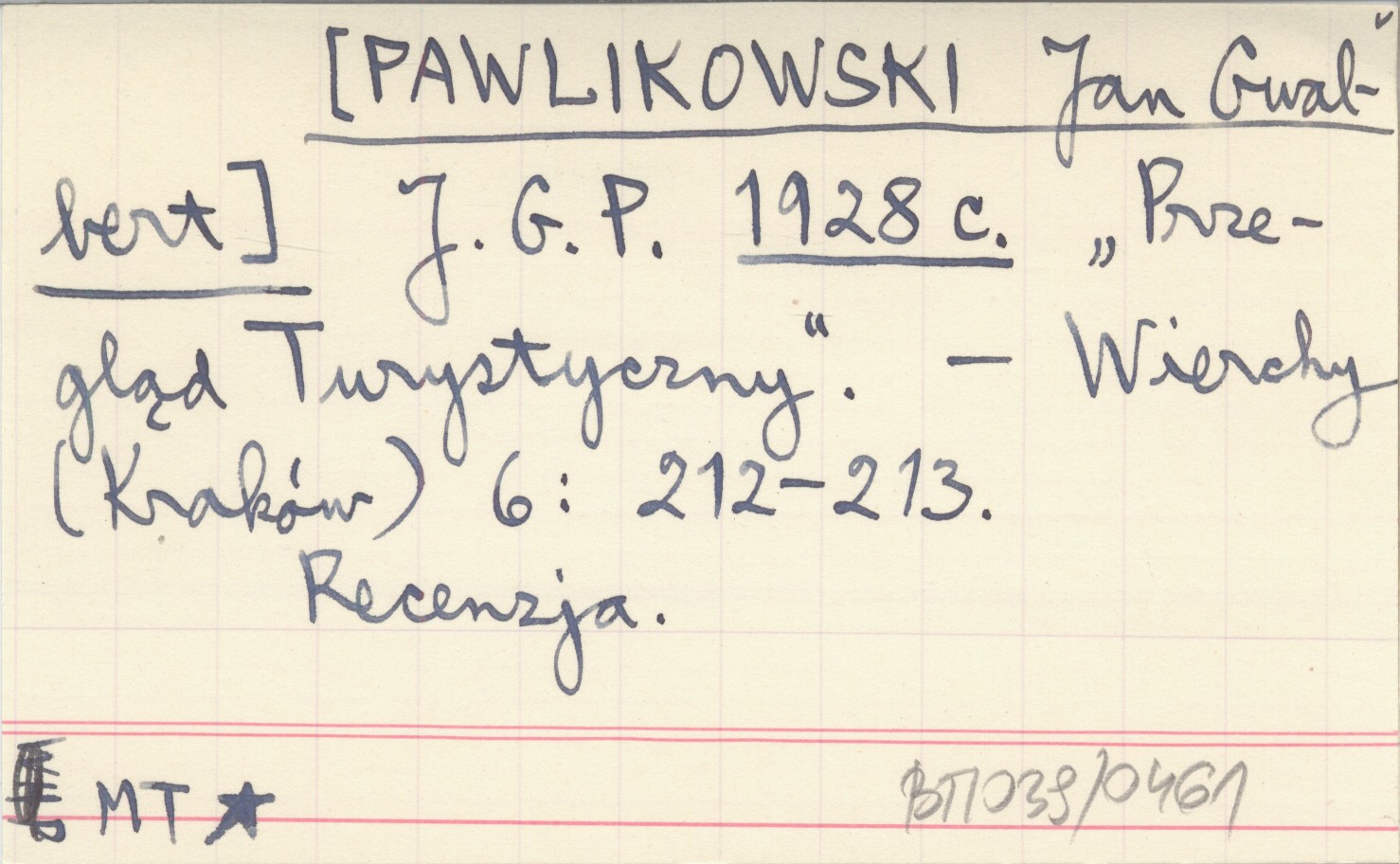 J. G. P. [PAWLIKOWSKI Jan Gwalbert] 1928 c "Przegląd Turystyczny".