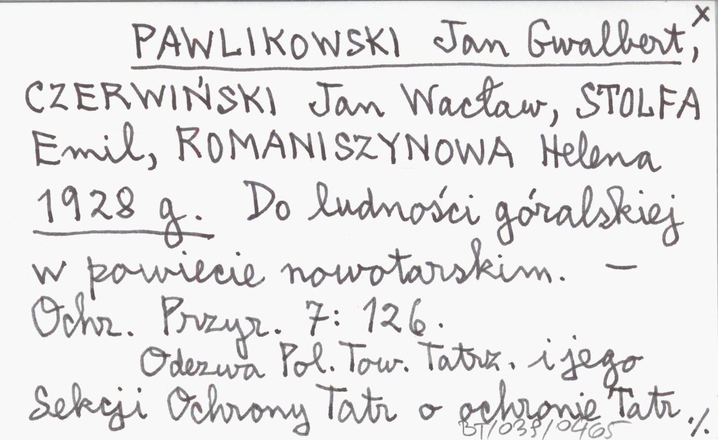 Ochrona Przyrody, 7: 126. Odezwa Polskiego Towarzystwa Tatrzańskiego i jego Sekcji Ochrony Tatr o ochronie Tatr i sprawach własnościowych tamże.