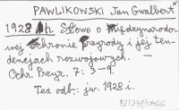 PAWLIKOWSKI Jan Gwalbert 1928 h Słowo o międzynarodowej ochronie przyrody i jej tendencjach rozwoju.