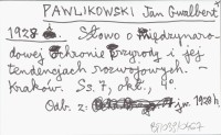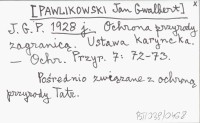 J. G. P. [PAWLIKOWSKI Jan Gwalbert] 1928 m Prawo ochrony przyrody w państwach skandynawskich, Danji i Finlandji.
