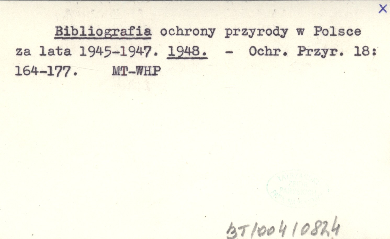 Bibliografia ochrony przyrody w Polsce za lata 1945-1947. 1948
