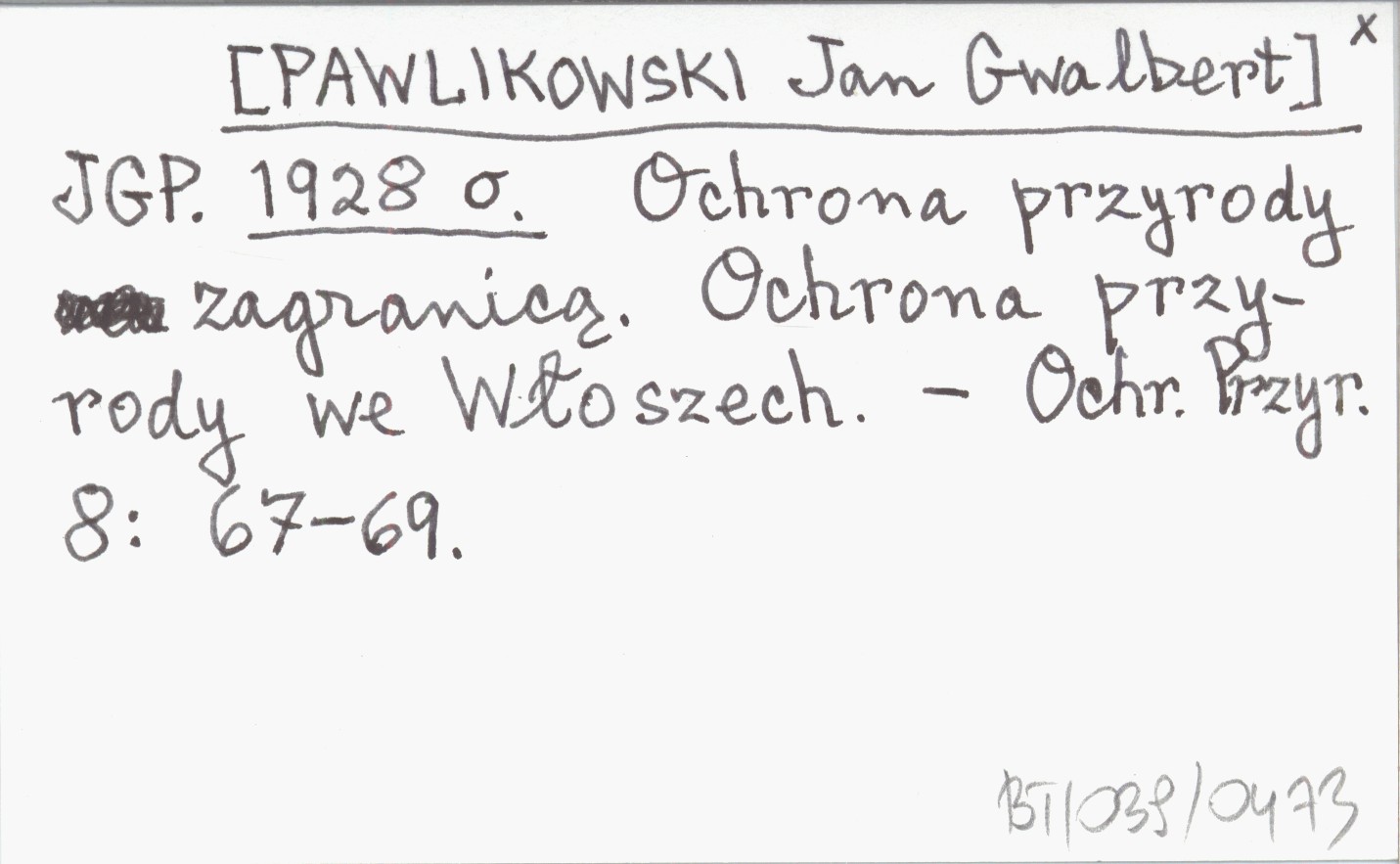 JGP. [PAWLIKOWSKI Jan Gwalbert] 1928 o Ochrona przyrody zagranicą. Ochrona przyrody we Włoszech.