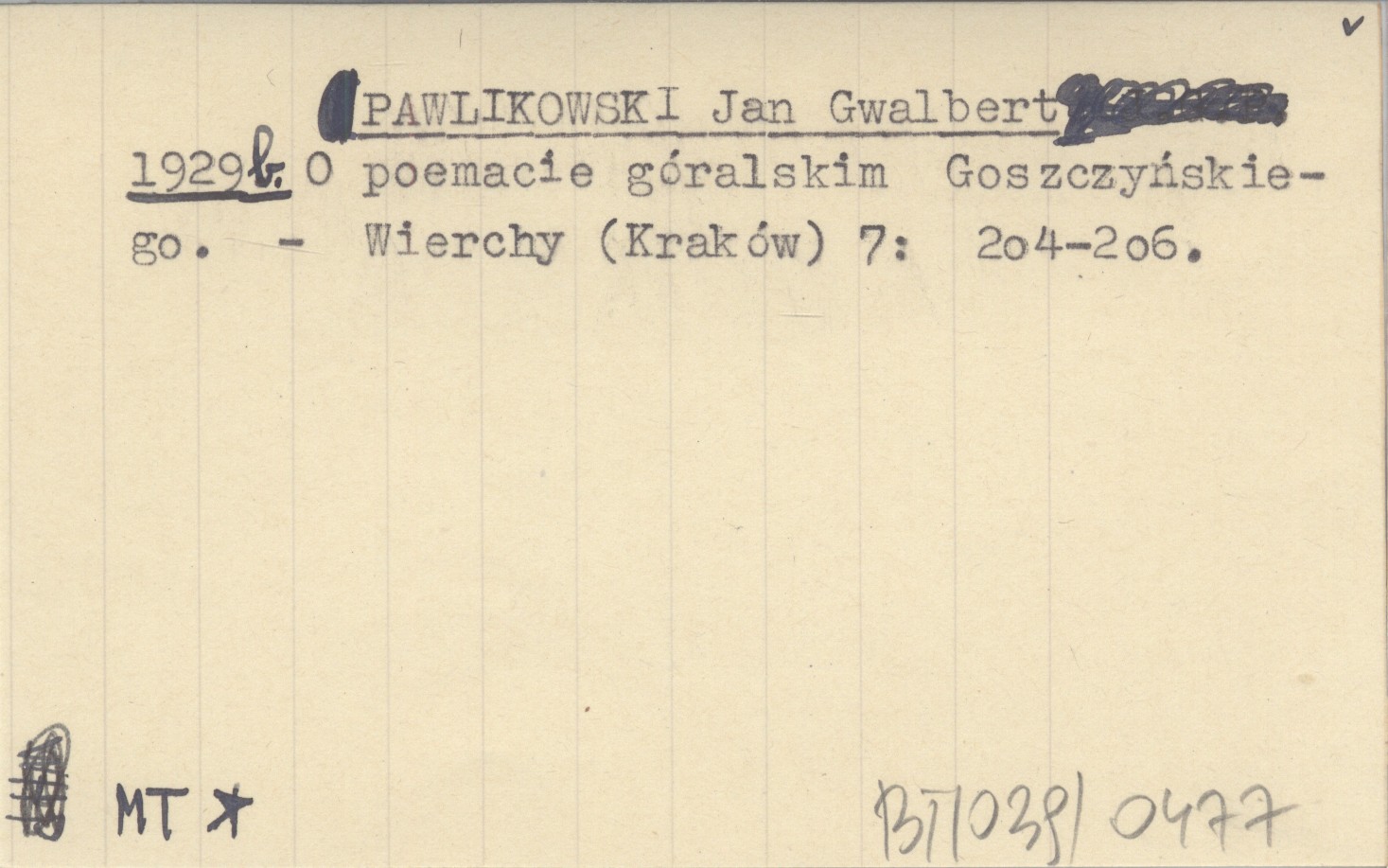PAWLIKOWSKI Jan Gwalbert 1929 b O poemacie góralskim Goszczyńskiego.