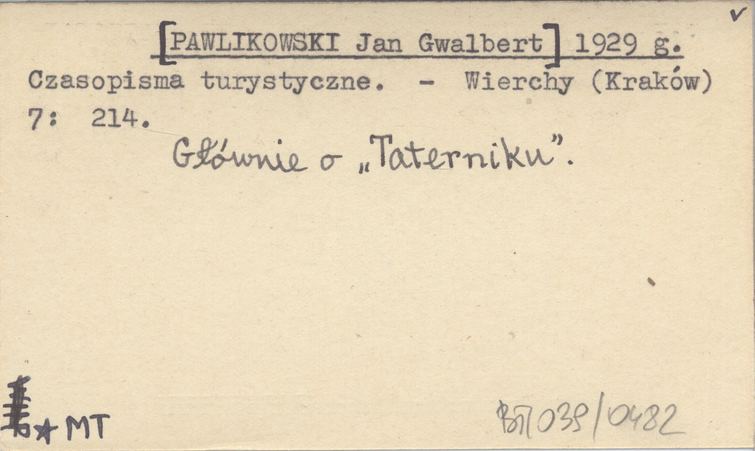 Wierchy (Kraków) , 7: 214. Głównie o "Taterniku".
