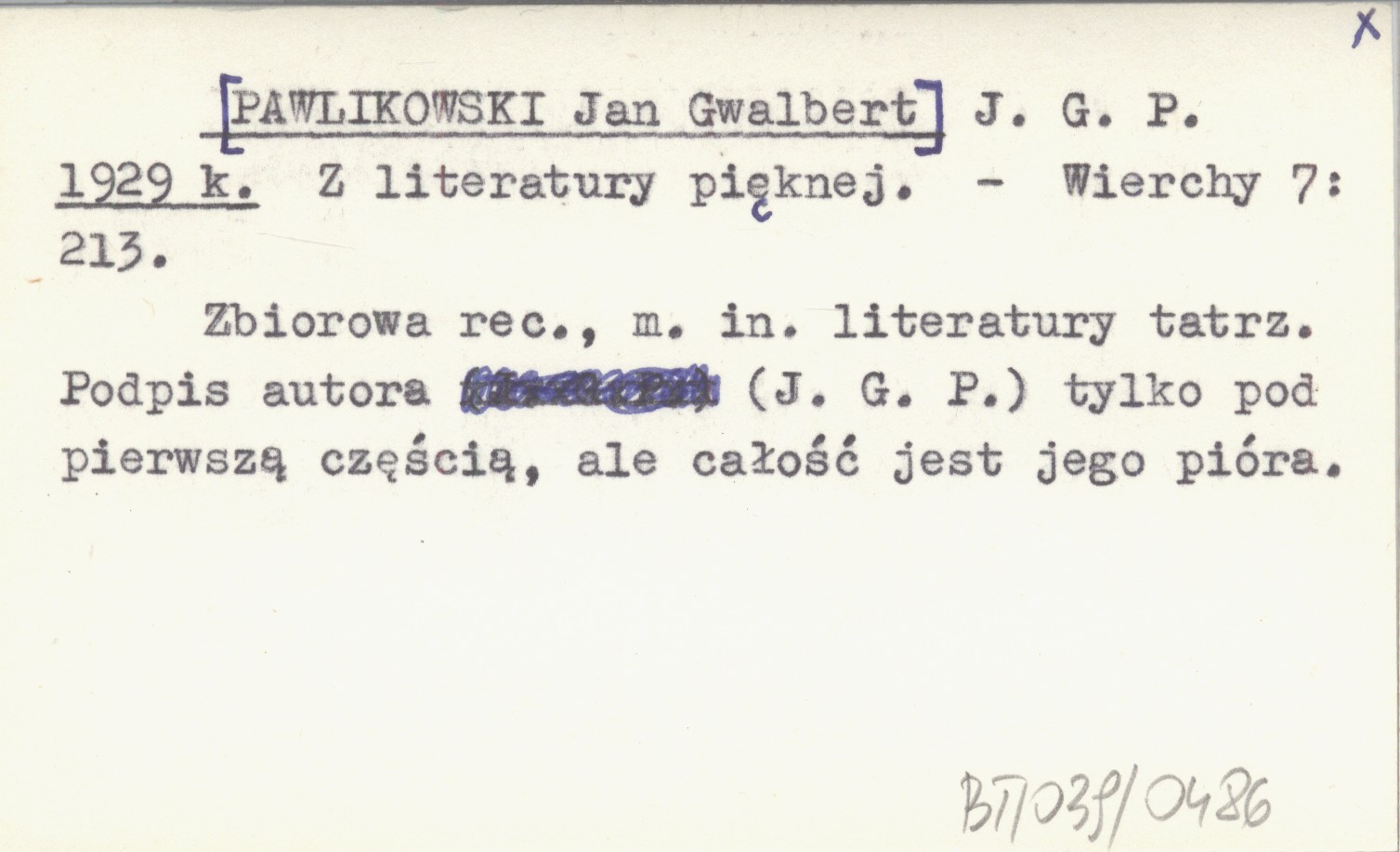 J. G. P. [PAWLIKOWSKI Jan Gwalbert] 1929 k Z literatury pięknej.