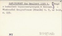 PAWLIKOWSKI Jan Gwalbert 1929 i [Uwagi o badaniach toponomastycznych w Tatrach.]