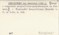 PAWLIKOWSKI Jan Gwalbert 1929 j [Uwagi o badaniach geograficzno-gospodarczych na Podhalu.]