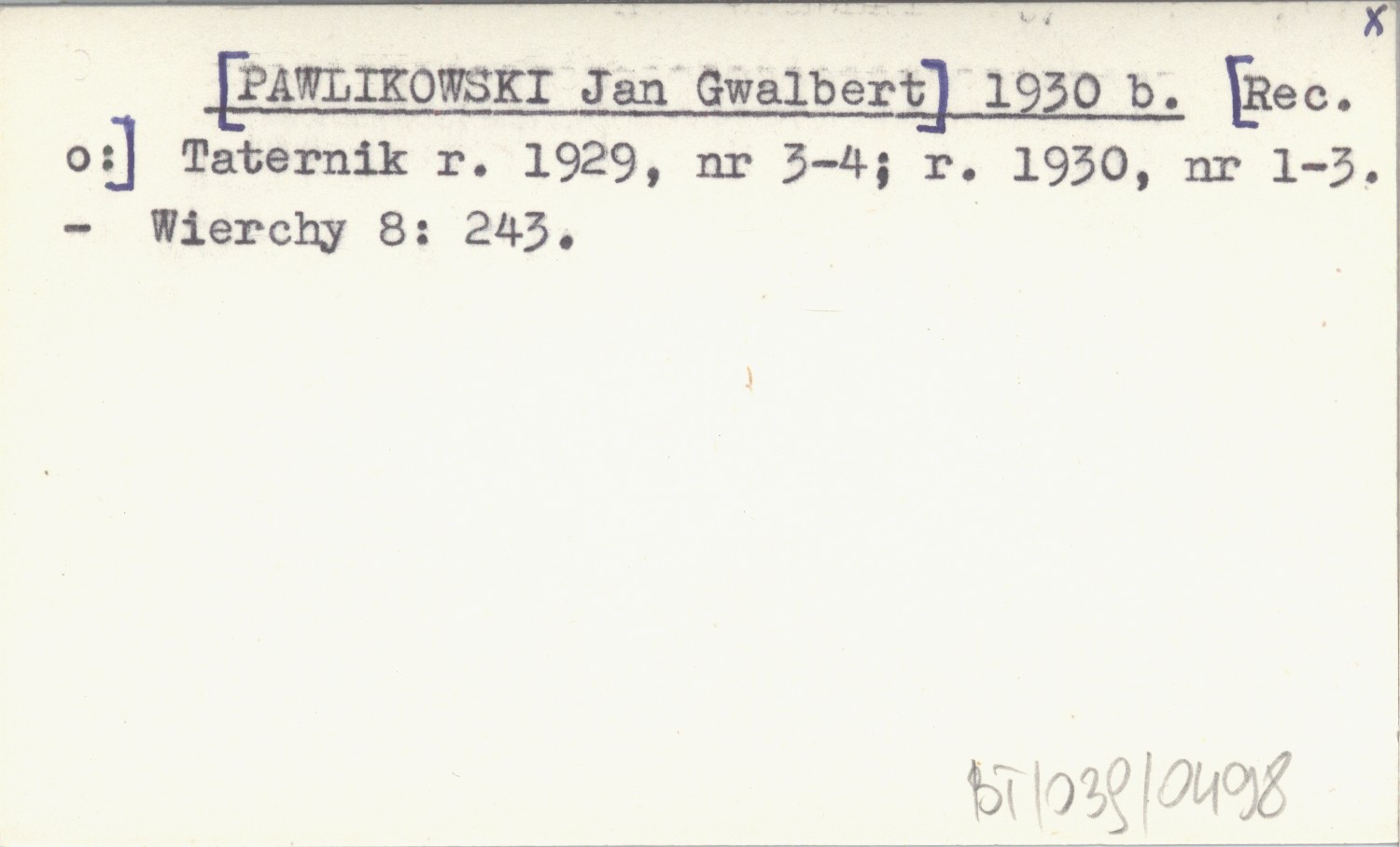 [PAWLIKOWSKI Jan Gwalbert] 1930 b [Rec. o:] Taternik r. 1929, nr 3-4 ; r. 1930, nr 1-3.