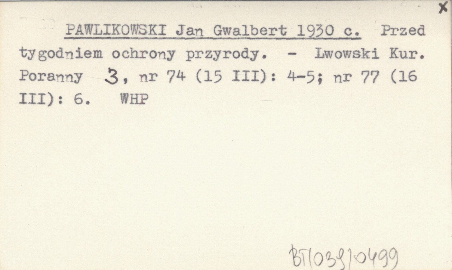 PAWLIKOWSKI Jan Gwalbert 1930 c Przed tygodniem ochrony przyrody.