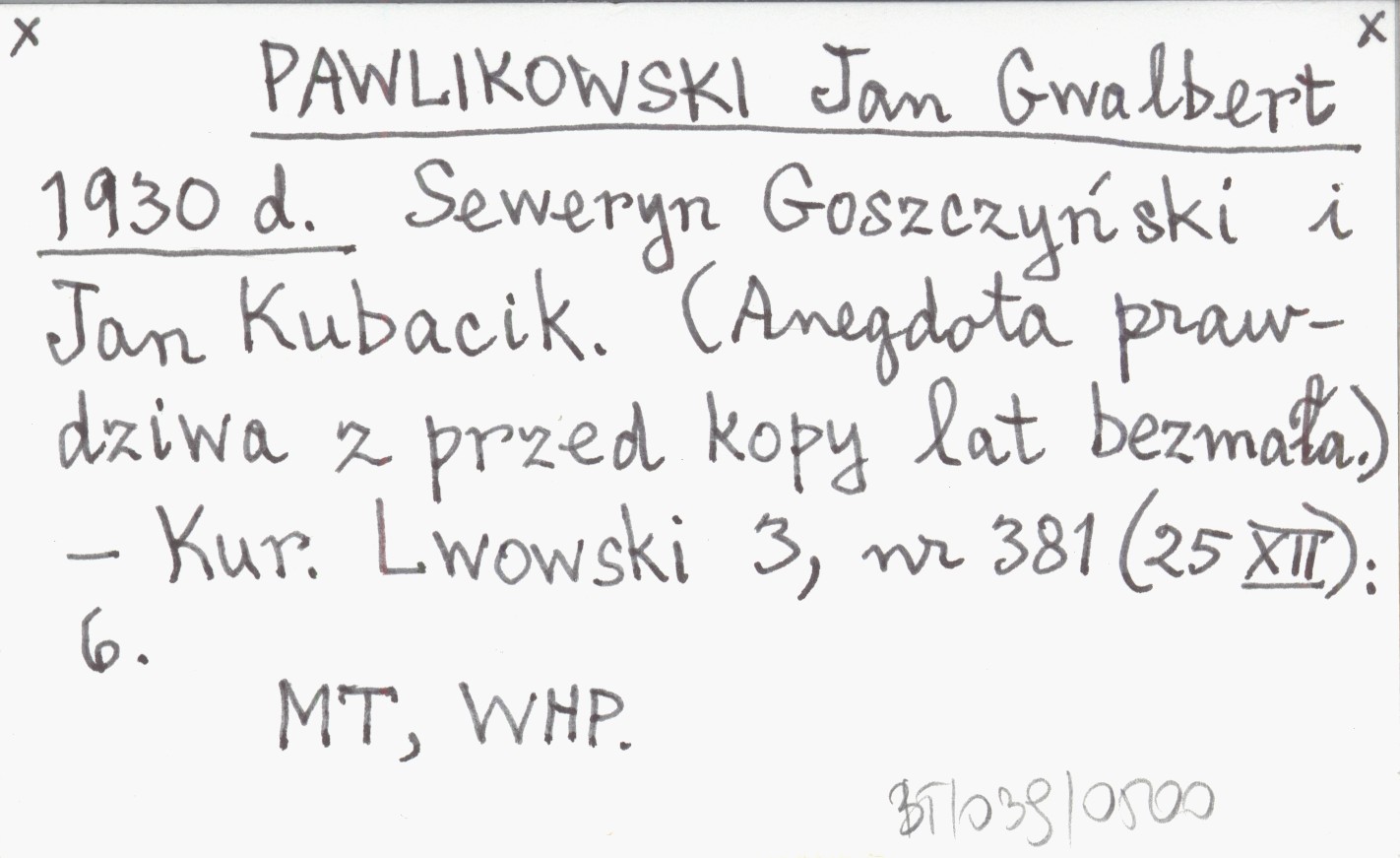 PAWLIKOWSKI Jan Gwalbert 1930 d Seweryn Goszczyński i Jan Kubacik. (Anegdota prawdziwa z przed kopy lat bezmała).
