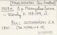 [PAWLIKOWSKI Jan Gwalbert] 1929 Ś.p. Mieczysław Świerz.