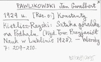 PAWLIKOWSKI Jan Gwalbert 1929 u [Rec. o:] Konstanty Kietlicz-Rayski: Sztuka góralska na Podhalu. (Wyd. Tow. Przyjaciół Nauk w Lublinie 1928).