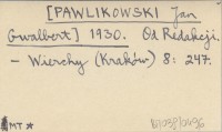 [PAWLIKOWSKI Jan Gwalbert] 1930 Od Redakcji.