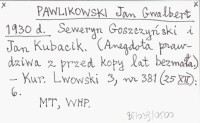 PAWLIKOWSKI Jan Gwalbert 1930 d Seweryn Goszczyński i Jan Kubacik. (Anegdota prawdziwa z przed kopy lat bezmała).