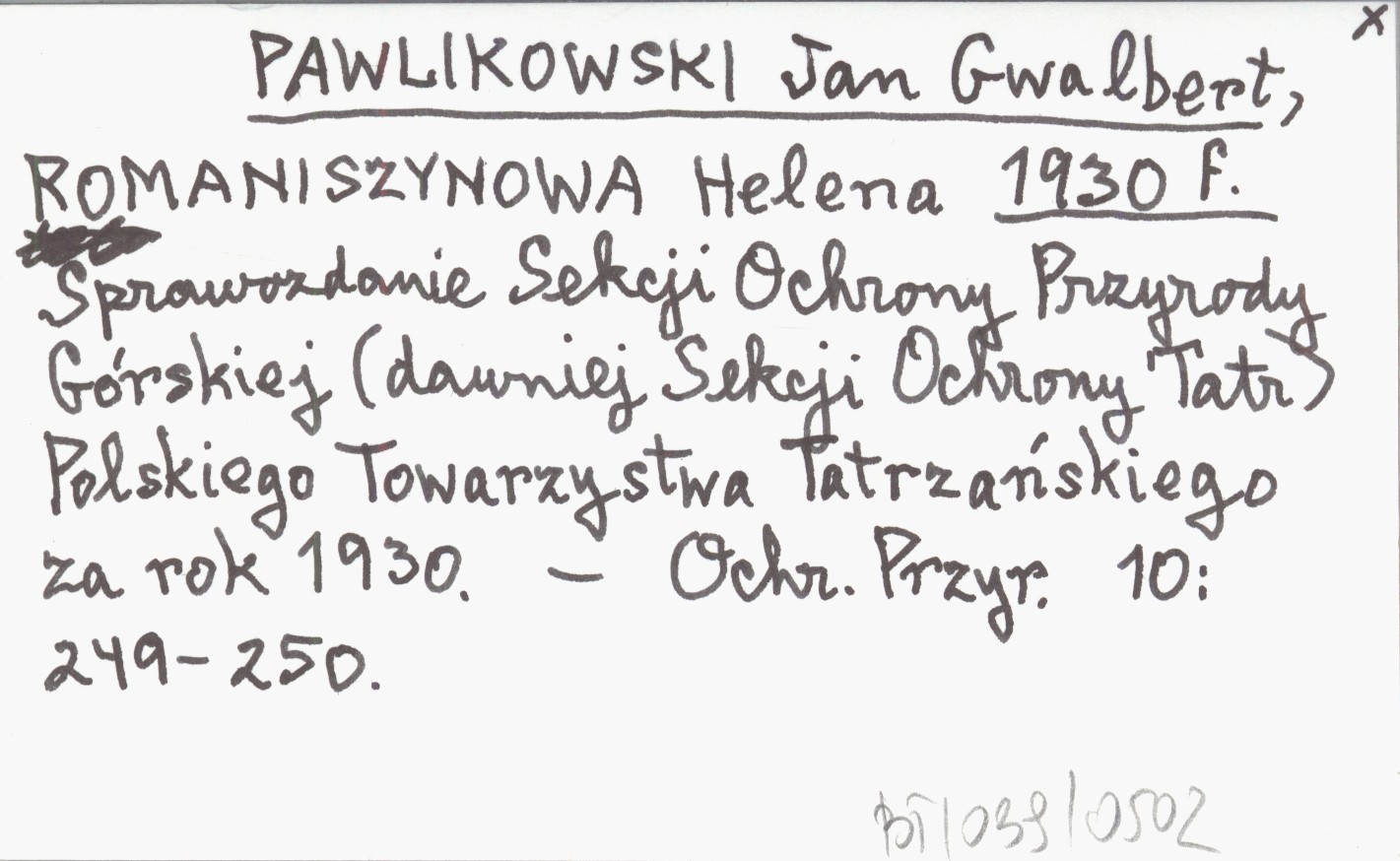 PAWLIKOWSKI Jan Gwalbert ROMANISZYNOWA, Helena. ; 1930 f Sprawozdanie Sekcji Ochrony Przyrody Górskiej (dawniej Sekcji Ochrony Tatr) Polskiego Towarzystwa Tatrzańskiego za rok 1930.