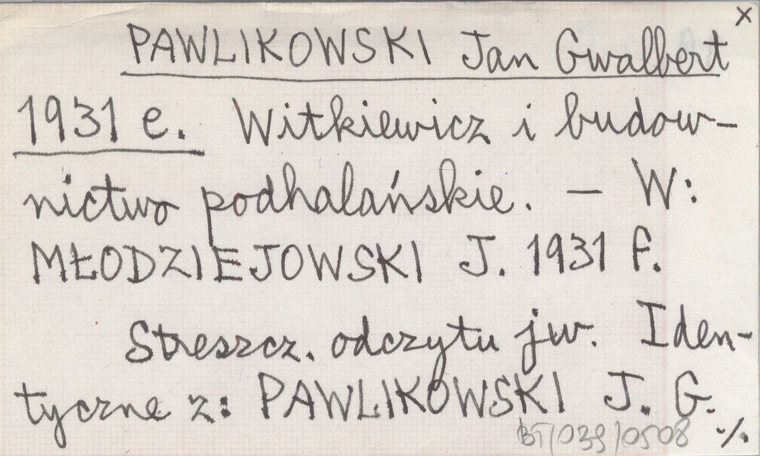 MŁODZIEJOWSKI J. 1931 f , Streszczenie odczytu jw. Identyczne z: PAWLIKOWSKI J. G. 1931 f