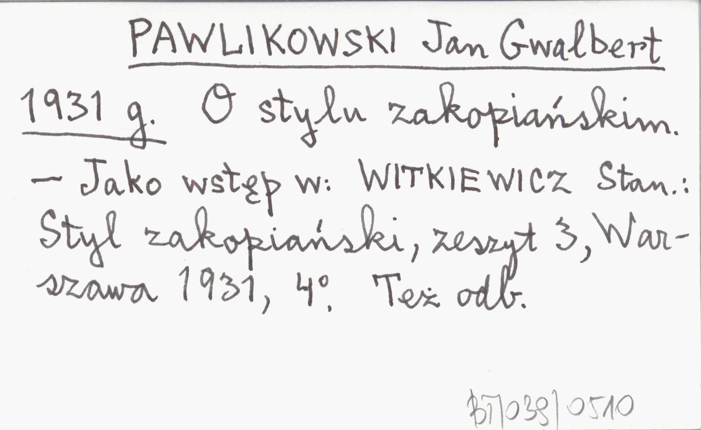 PAWLIKOWSKI Jan Gwalbert 1931 g O stylu zakopiańskim.