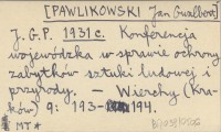J. G. P. [PAWLIKOWSKI Jan Gwalbert] 1931 c Konferencja wojewódzka w sprawie ochrony zabytków sztuki ludowej i przyrody.