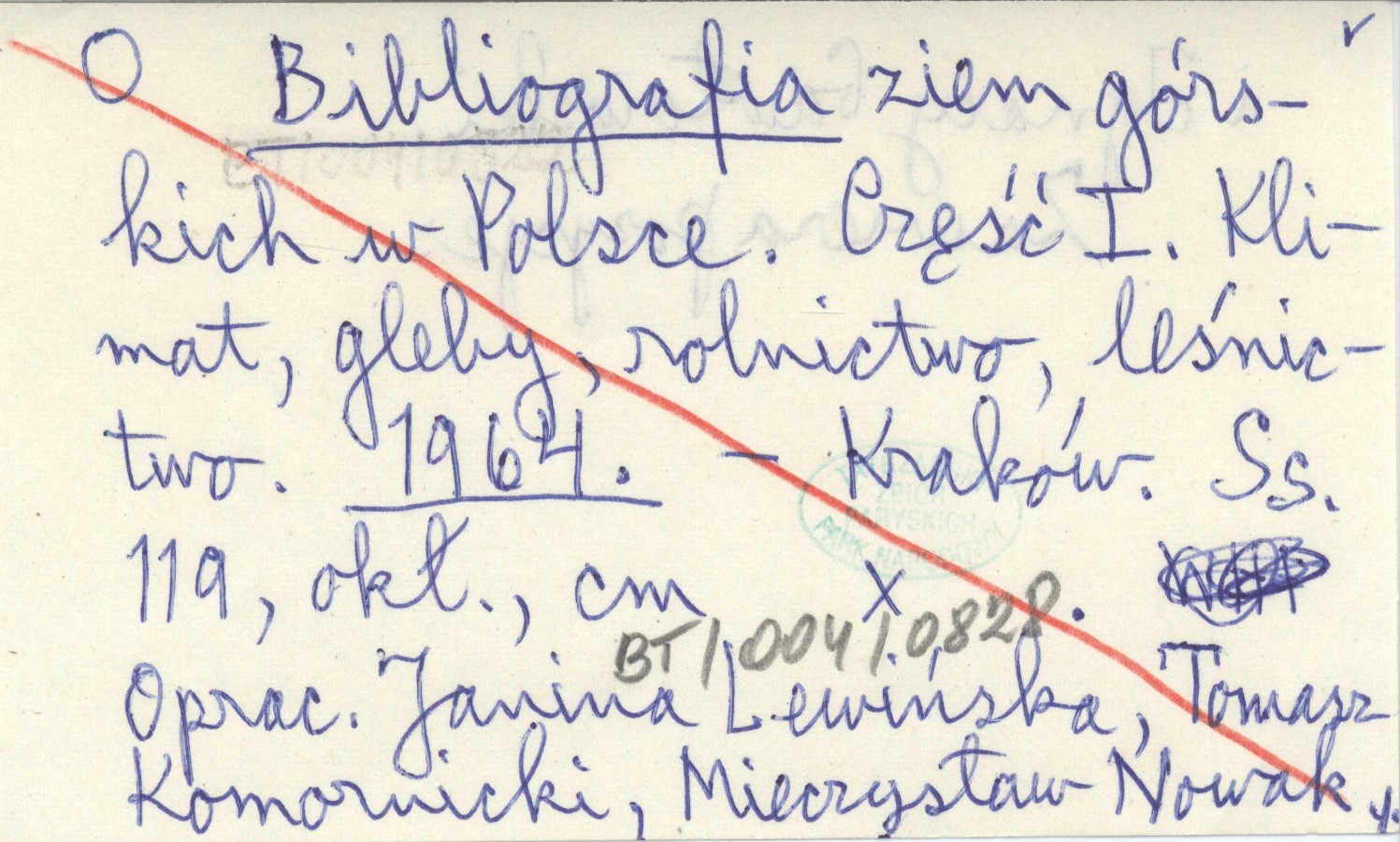 Bibliografia ziem górskich w Polsce. Część I. Klimat, gleby, rolnictwo, leśnictwo. 1964