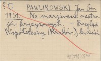 PAWLIKOWSKI Jan Gw. 1931 Na marginesie nastrojów kryzysowych.