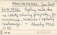PAWLIKOWSKI Jan Gwalbert 1932 Ogólny rzut oka na istotę ochrony przyrody, jej znaczenie, zadania i sposoby realizacji.