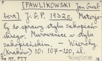 J. G. P. [PAWLIKOWSKI Jan Gwalbert] 1932 c Materjały do spraw stylu zakopiańskiego. Murowanice w stylu zakopiańskim.