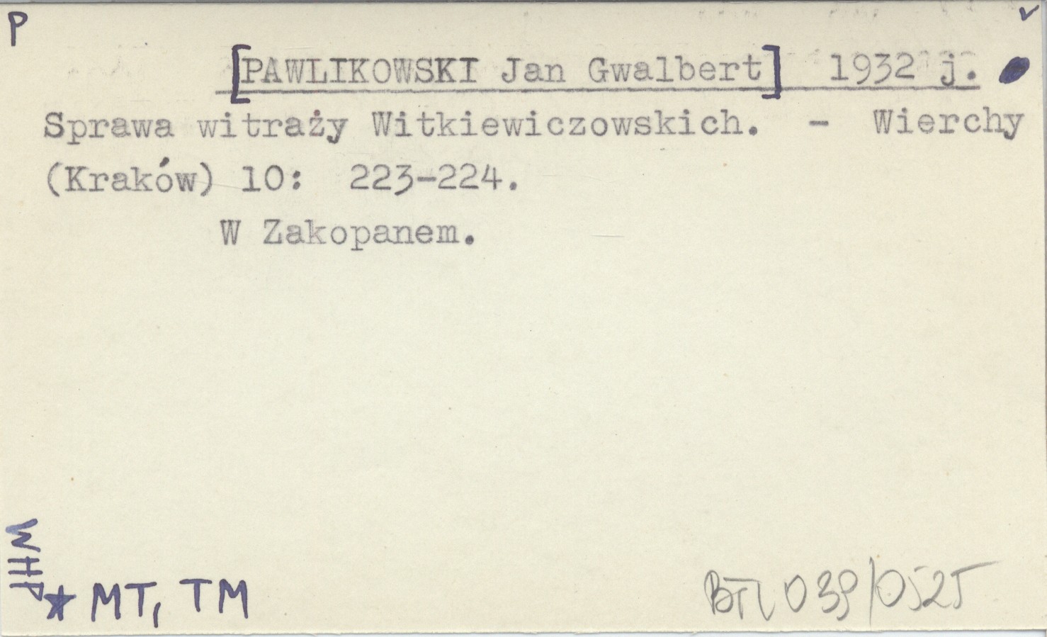 Wierchy (Kraków) , 10: 223-224. W Zakopanem.