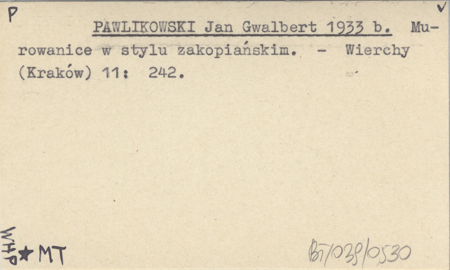 PAWLIKOWSKI Jan Gwalbert 1933 b Murowanice w stylu zakopiańskim.