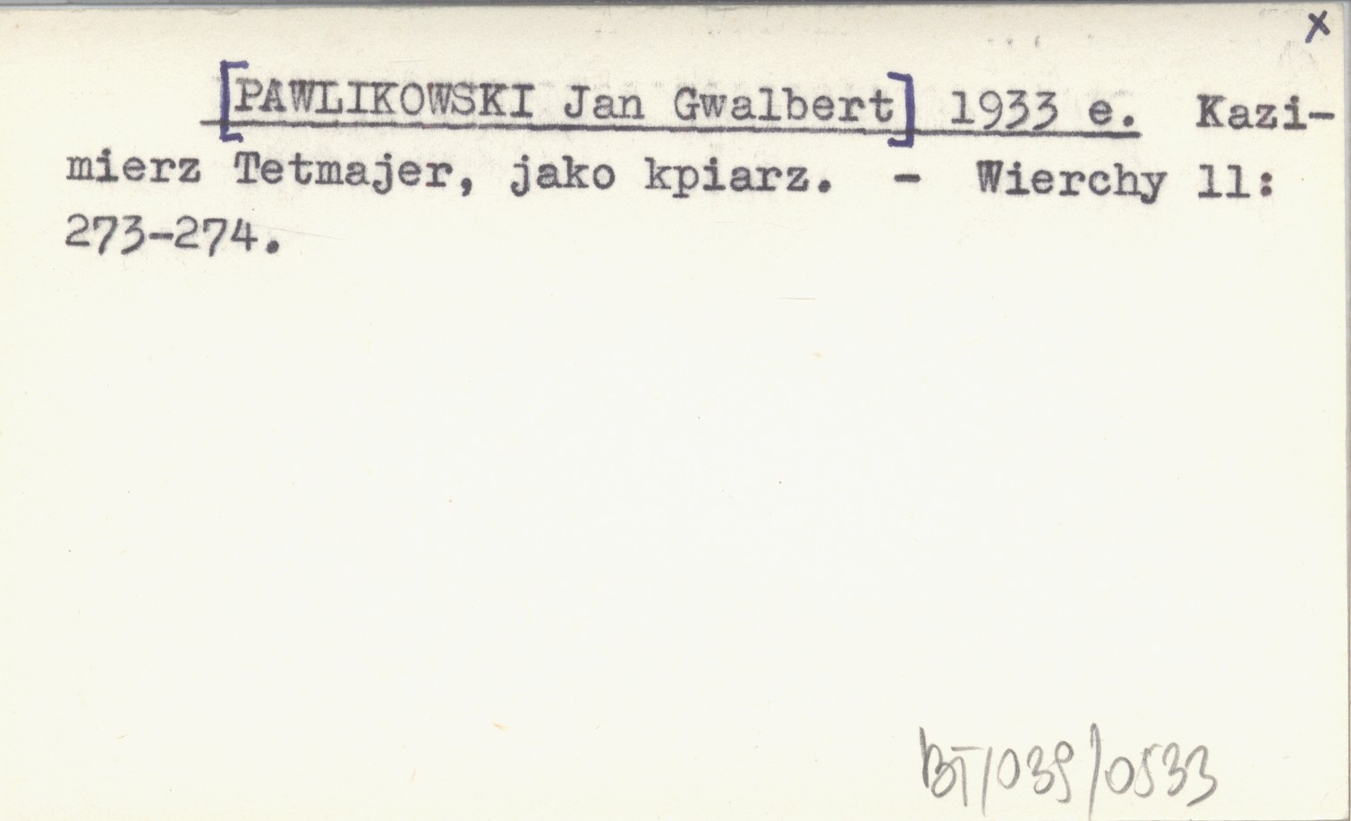 [PAWLIKOWSKI Jan Gwalbert] 1933 e Kazimierz Tetmajer, jako kpiarz.