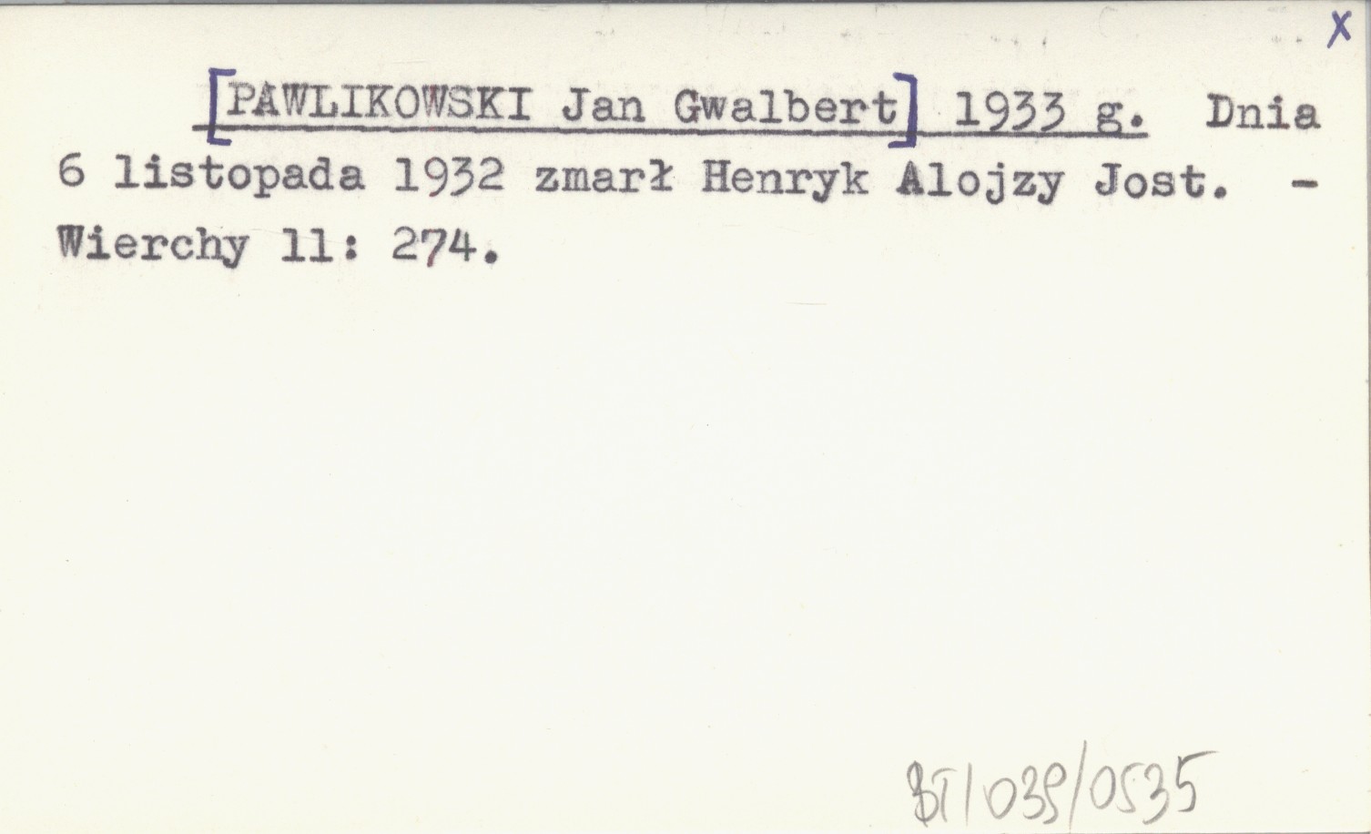[PAWLIKOWSKI Jan Gwalbert] 1933 g Dnia 6 listopada 1932 zmarł Henryk Alojzy Jost.