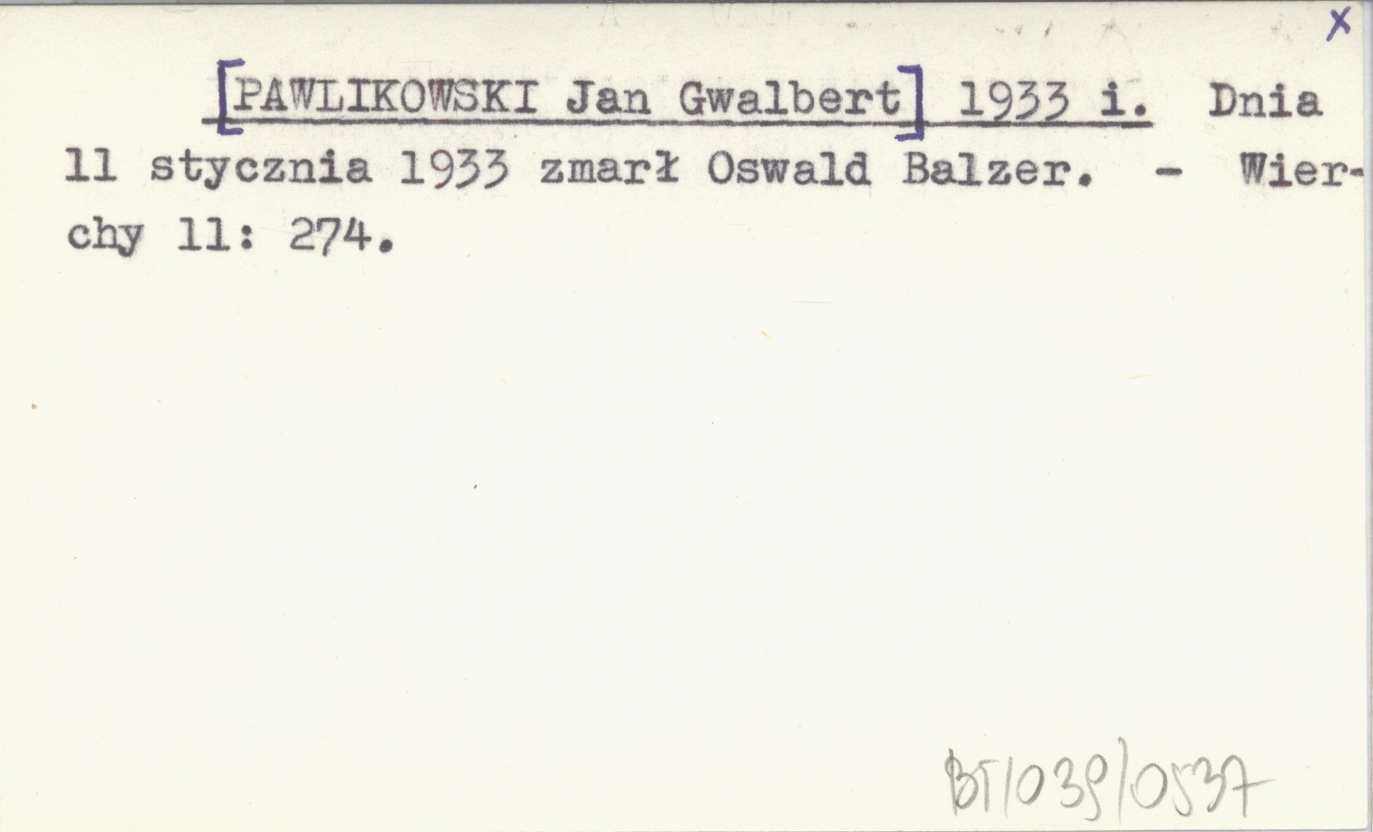 [PAWLIKOWSKI Jan Gwalbert] 1933 i Dnia 11 stycznia 1933 zmarł Oswald Balzer.