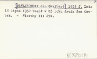 [PAWLIKOWSKI Jan Gwalbert] 1933 f Dnia 15 lipca 1932 zmarł w 83 roku życia Jan Czubek.