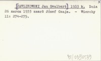 [PAWLIKOWSKI Jan Gwalbert] 1933 k Dnia 26 marca 1933 zmarł Józef Czaja.