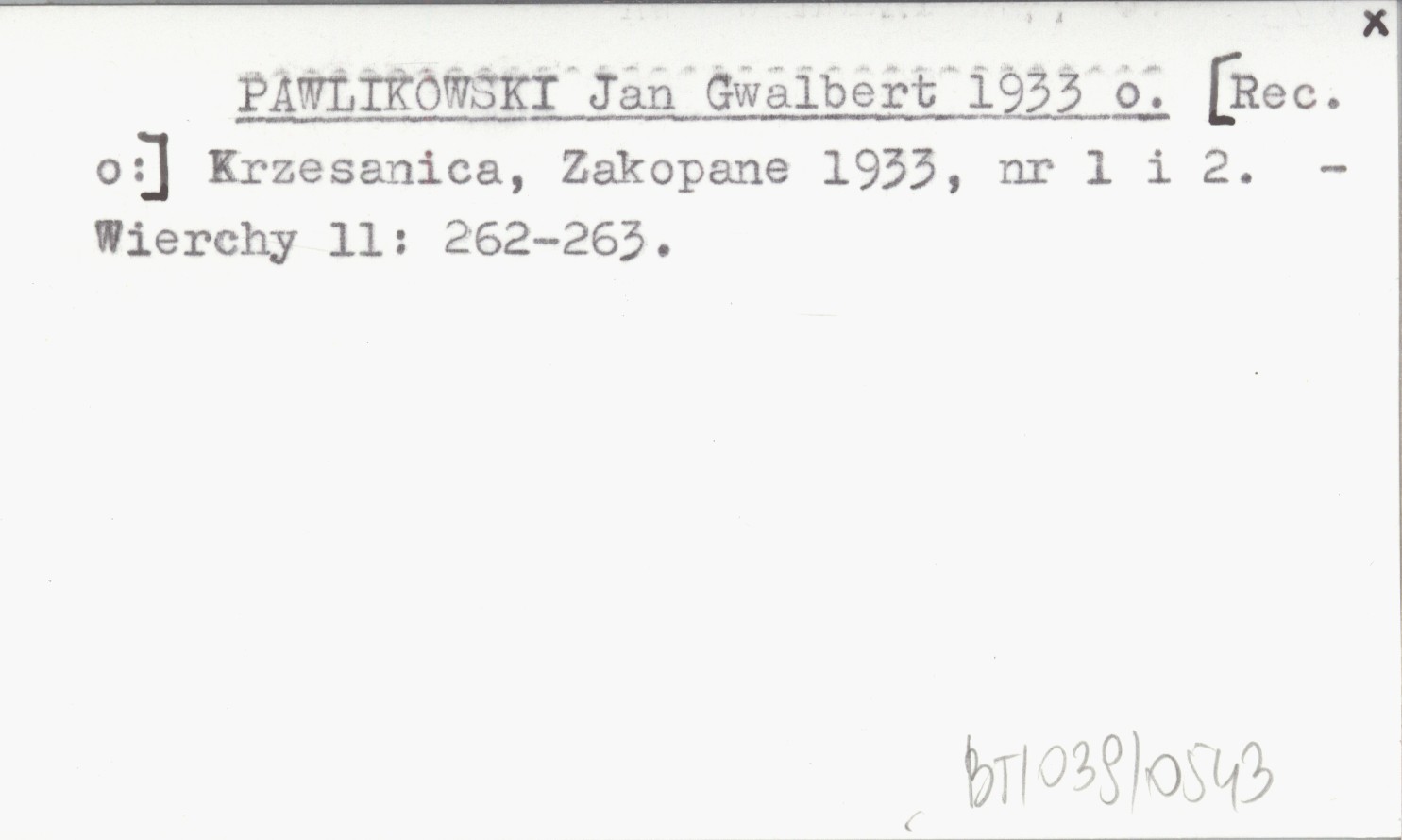 PAWLIKOWSKI Jan Gwalbert 1933 o [Rec. o:] Krzesanica, Zakopane 1933, nr 1 i 2.
