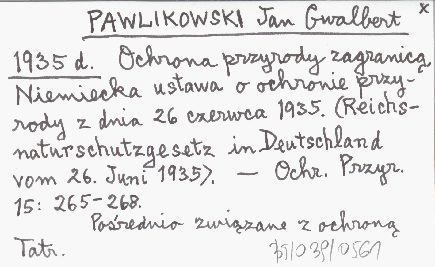 PAWLIKOWSKI Jan Gwalbert 1935 d Ochrona przyrody zagranicą. Niemiecka ustawa o ochronie przyrody z dnia 26 czerwca 1935. (Reichsnaturschutzgesetz in Deutschland vom 26. Juni 1935).