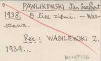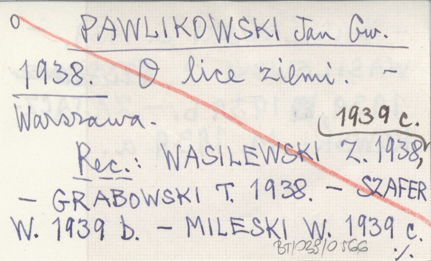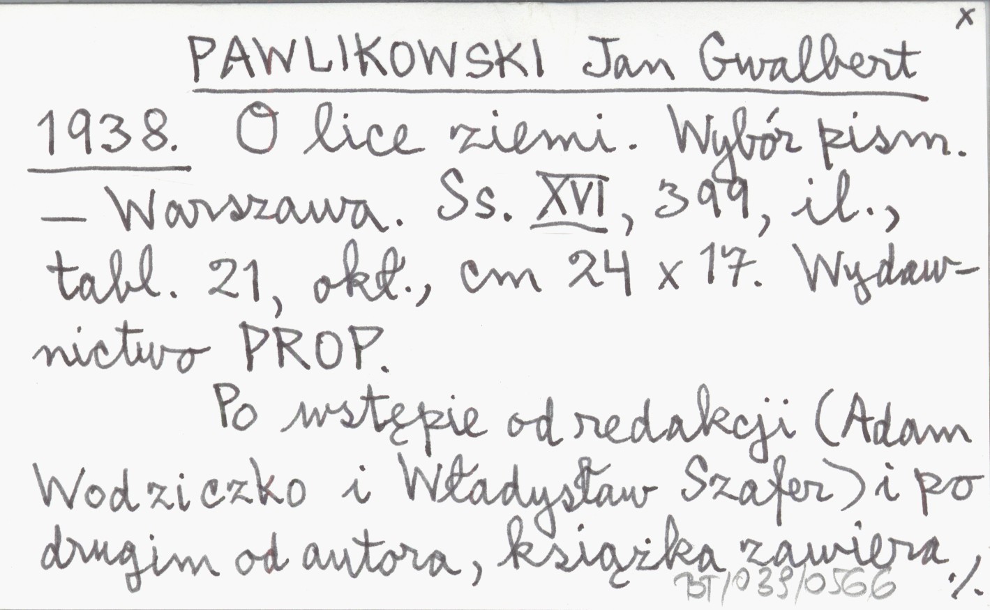 PAWLIKOWSKI Jan Gwalbert RED: WODZICZKO, Adam. ; SZAFER, Władysław. ; 1938 O lice ziemi. Wybór pism.