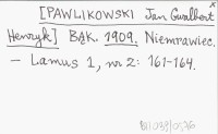 BĄK [PAWLIKOWSKI J. G. H.] 1909 Niemrawiec.
