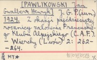 J. G. P. (iun.) [PAWLIKOWSKI Jan Gwalbert Henryk] 1924 Z okazji pięćdziesiątej rocznicy założenia Francuskiego Klubu Alpejskiego (C.A.F.).