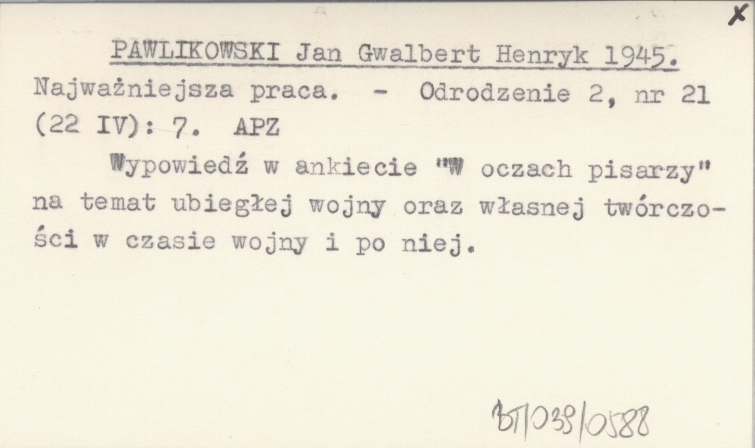 PAWLIKOWSKI Jan Gwalbert Henryk 1945 Najważniejsza praca.
