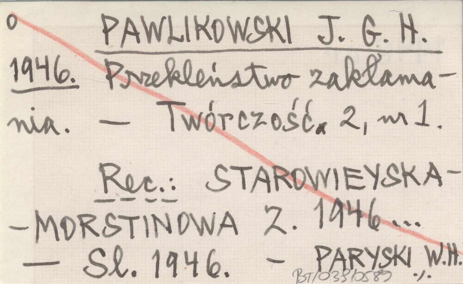 PAWLIKOWSKI Jan Gwalbert [Henryk] 1946 Przekleństwo zakłamania.