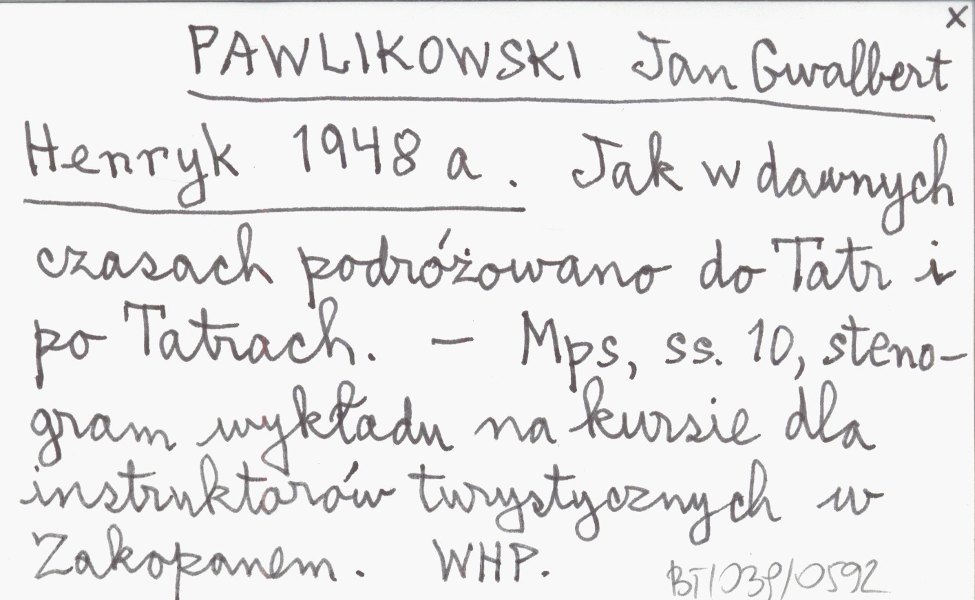 , 10 s. Maszynopis. Stenogram wykładu na kursie dla instruktorów turystycznych w Zakopanem.